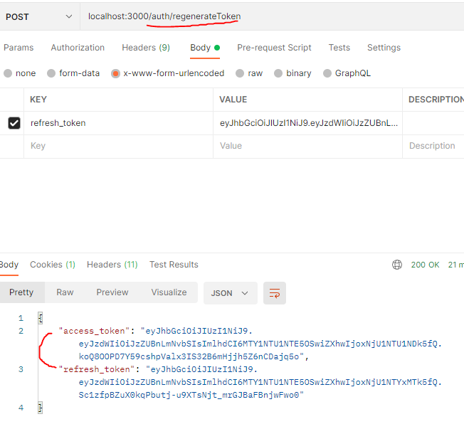 /auth/regenerateToken으로 post 요청을 보냈더니